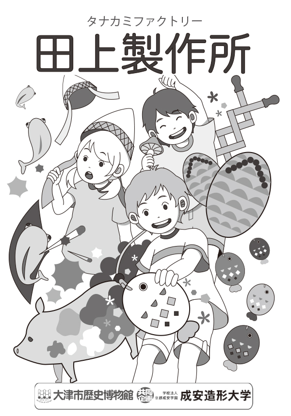この企画は、成安造形大学との共同企画によって開催する、おもちゃ作りのワークショップです。今年度は、博物館の夏季企画展「田上てぬぐい −暮らしと文化−」をテーマとした内容です。
